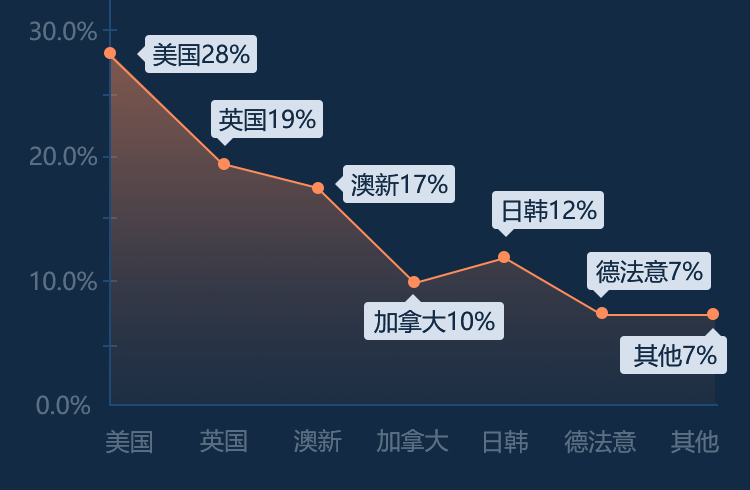 英语系国家(英美加澳新)依然是留学生出国留学的优先选择;